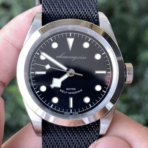 Reloj de hombre de moda mecánico automático con placa negra de 36mm, correa de nailon, reloj deportivo resistente al agua